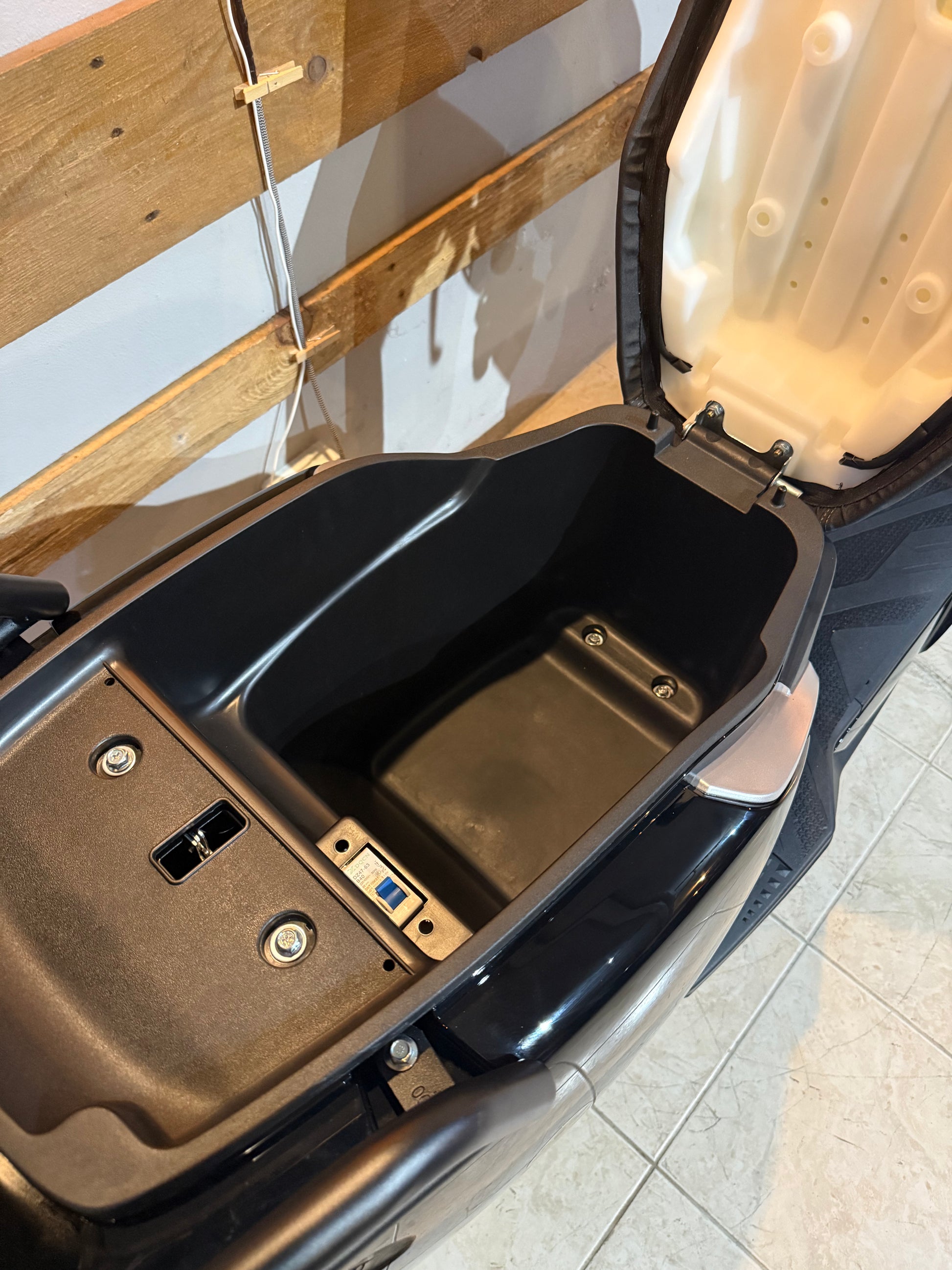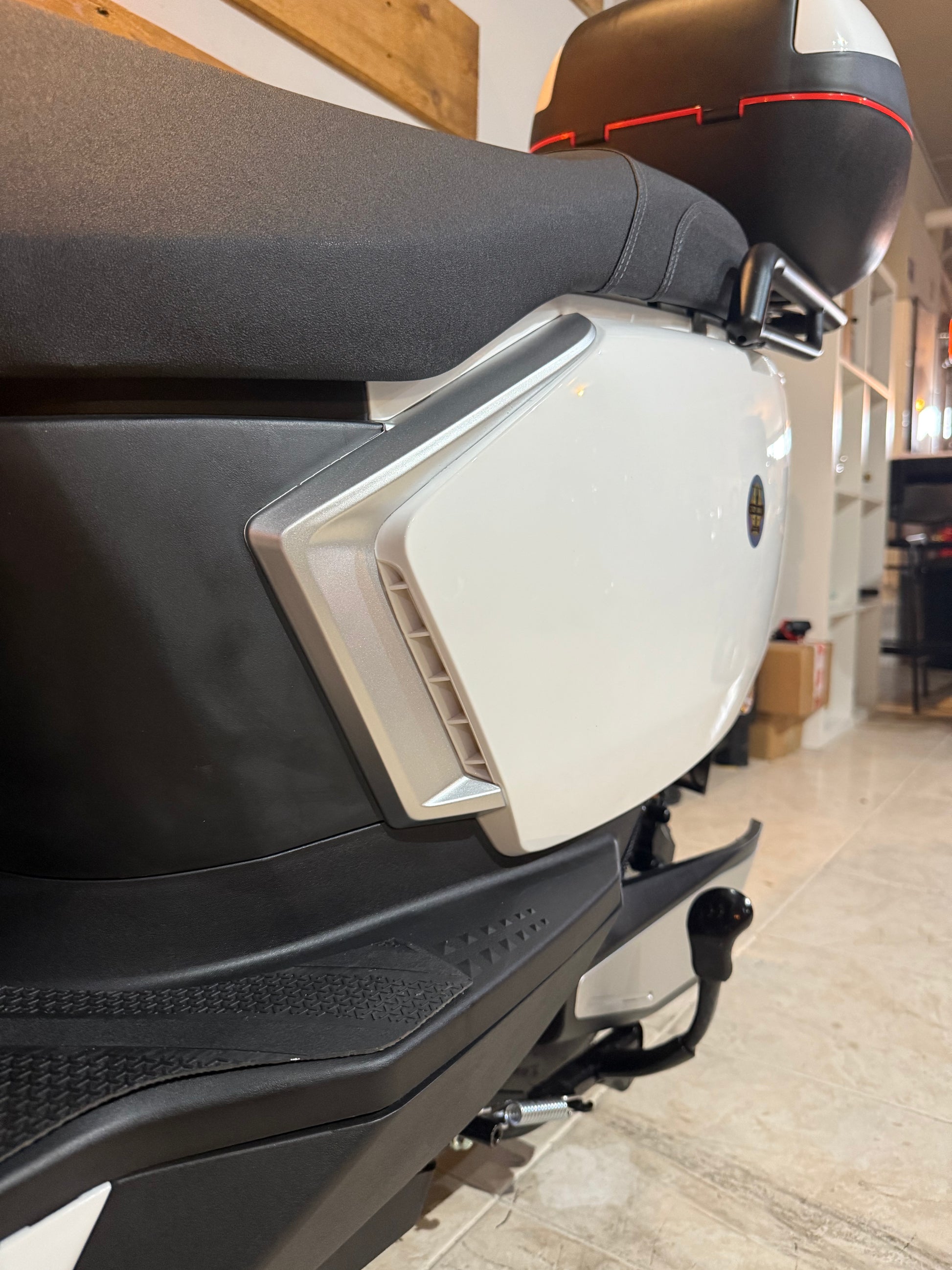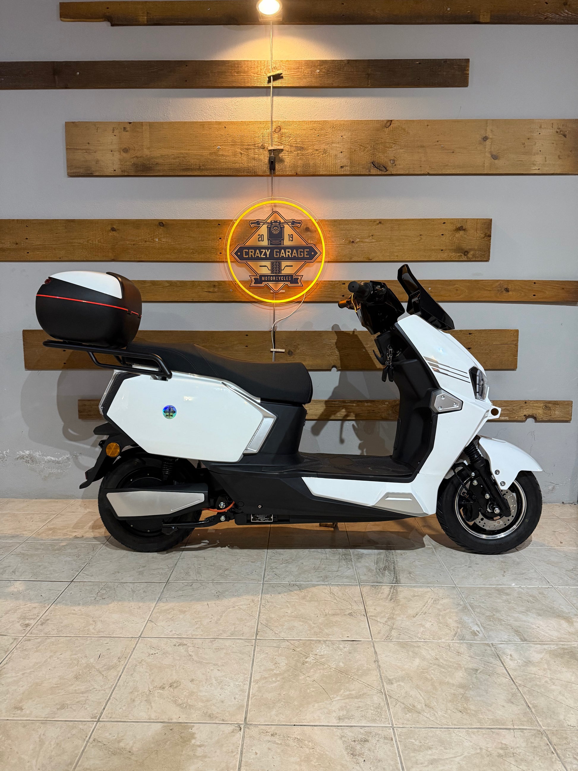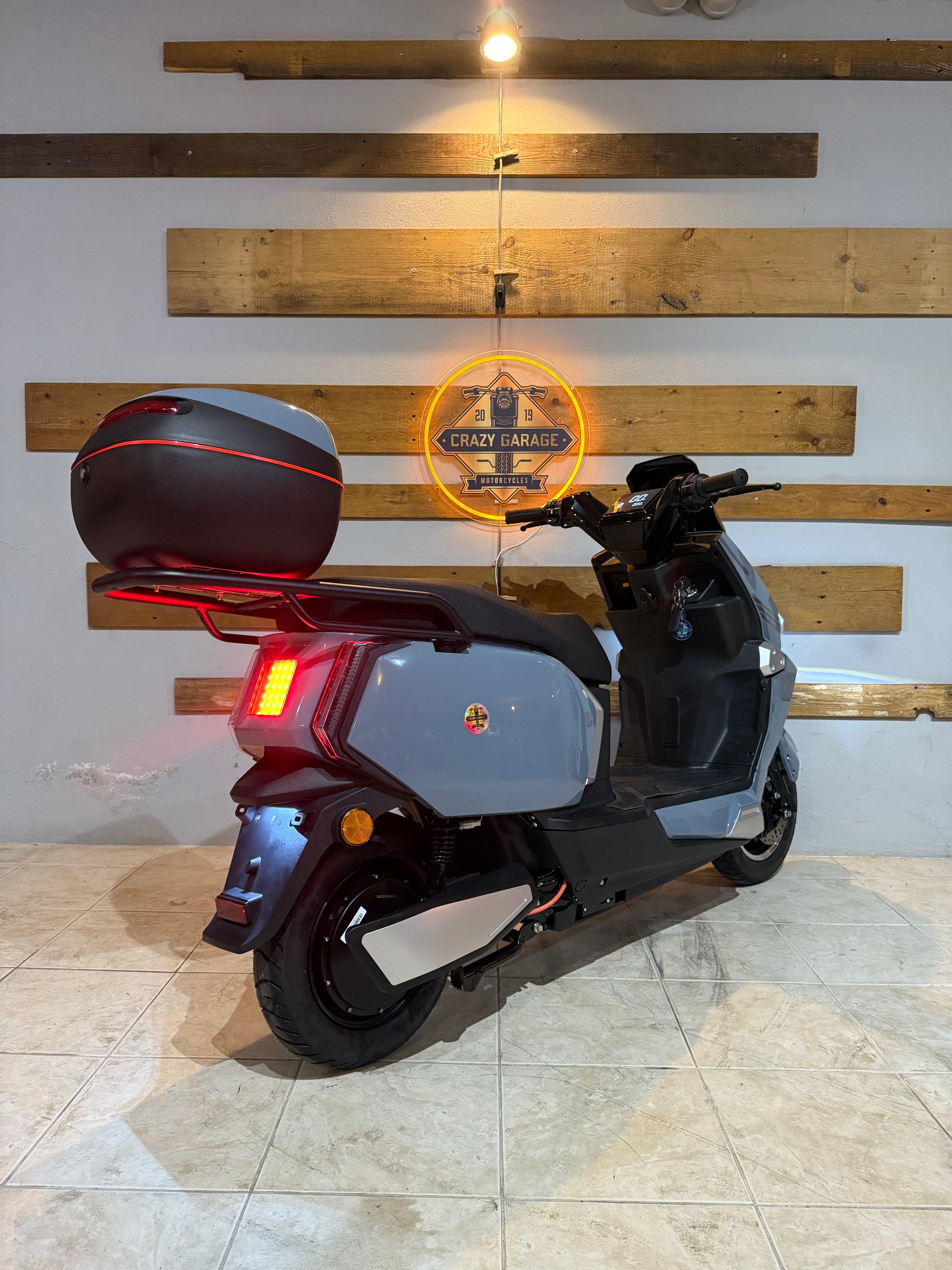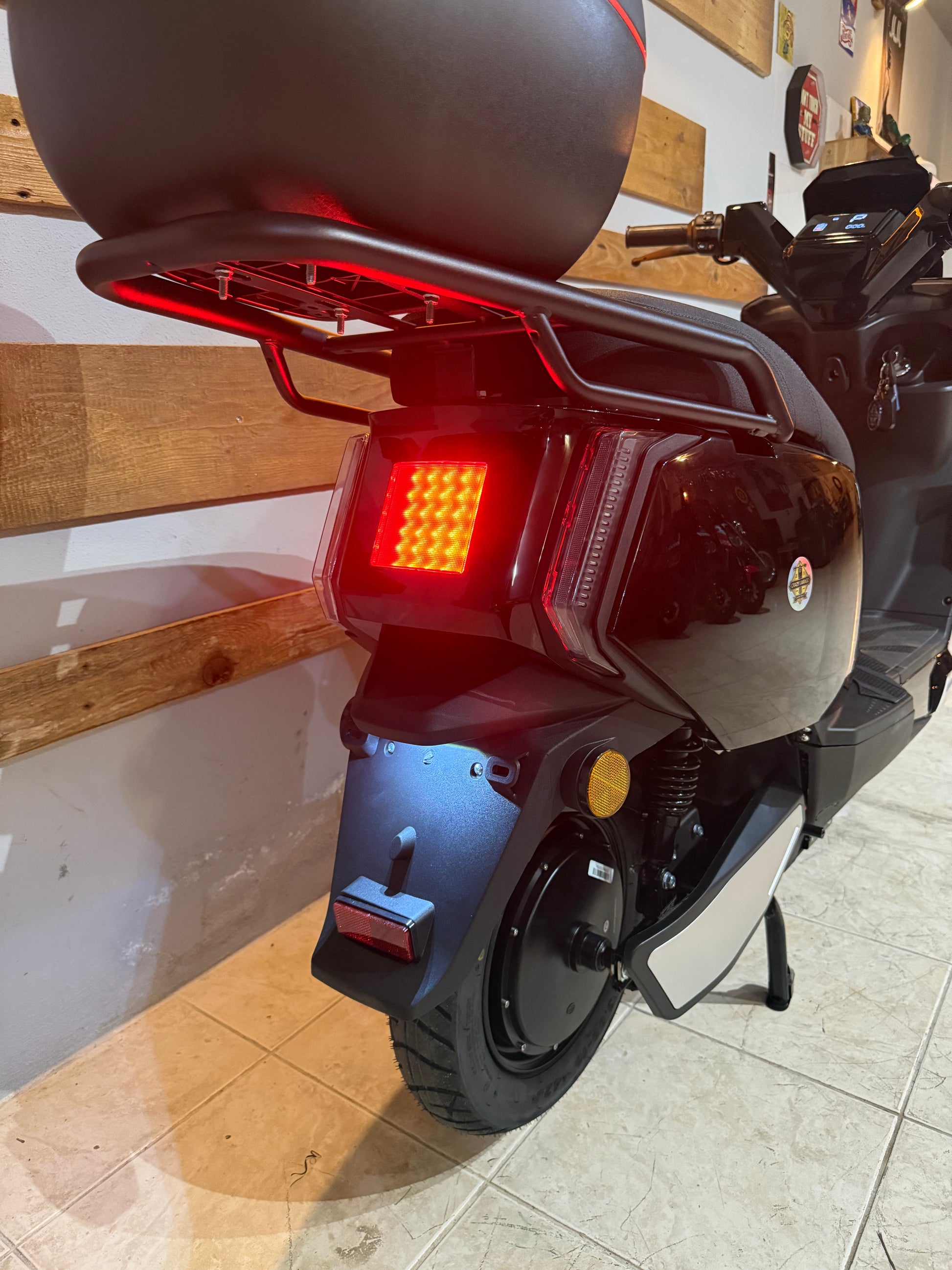A destacar a grande capacidade de arrumação por baixo do banco ,alarme ,luzes Led , porta USB ,pneus Kenda ,top case ,motor e controlador de 72V para aguentar todo o tipo de subidas e Marcha-atrás .