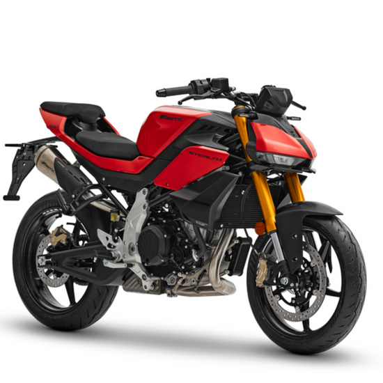 Suspensões: A Stealth 500 está equipada com forquilhas invertidas e um monoamortecedor traseiro, oferecendo um bom compromisso entre conforto e desempenho desportivo.